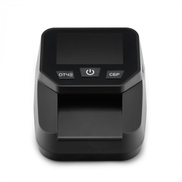Модель оснащена LCD-дисплеем 2,5", на котором отображается полезная для кассира и администратора информация: проверяемая валюта, номинал купюры, общая сумма, активное направление подачи, а также предупреждение о низком уровне заряда аккумулятора. Индикация рассчитана на практическое использование и хорошо читается в рабочих условиях.