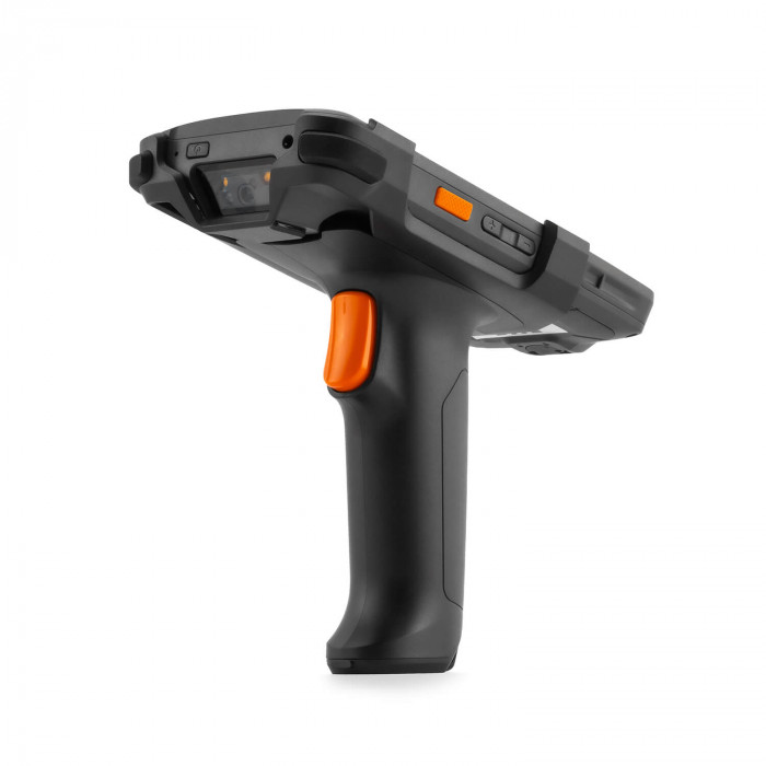 Использование пистолетной рукояти повышает эффективность персонала. Оператор ТСД может направлять устройство под произвольным углом. Прибор надежно фиксируется на пистолетной рукоятке. Исключено падение терминала при наклоне рукояти. Наклоненный терминал считывает несколько RFID меток одновременно, что ускоряет складские операции.
